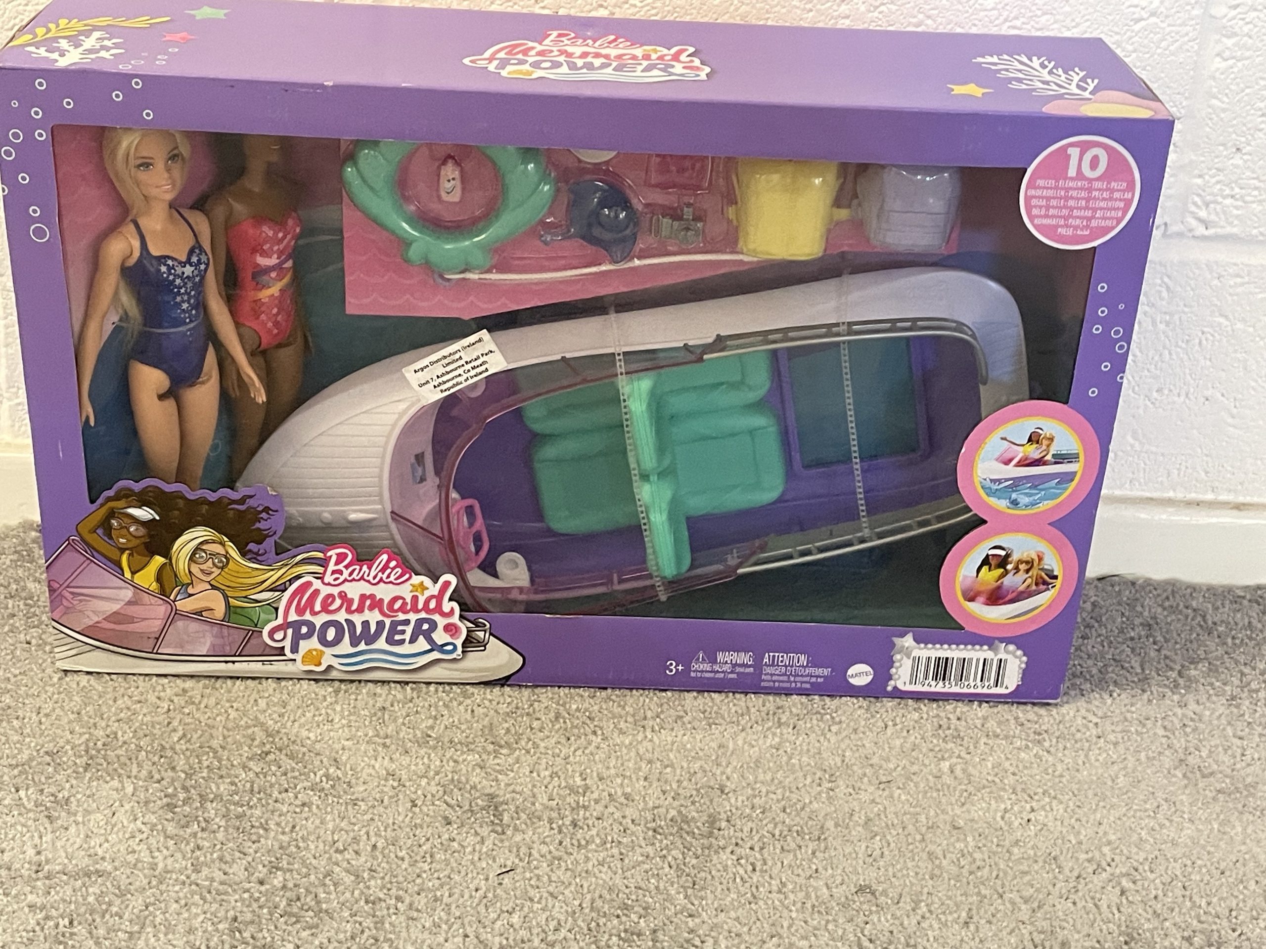 Dive into storytelling adventures with Barbie ‘Malibu’ Roberts doll, Barbie ‘Brooklyn’ Roberts doll and a boat that can really float.
